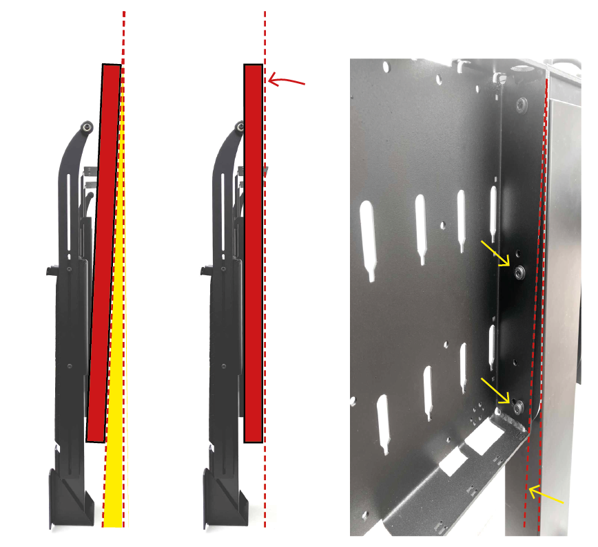 Bei besonders schweren Bildschirmen kann passieren, dass sie etwas nach vorn kippen. Die Schrägstellung lässt sich ausgleichen, indem die Montagehaube, an der der Bildschirm hängt, entsprechend gerichtet wird.