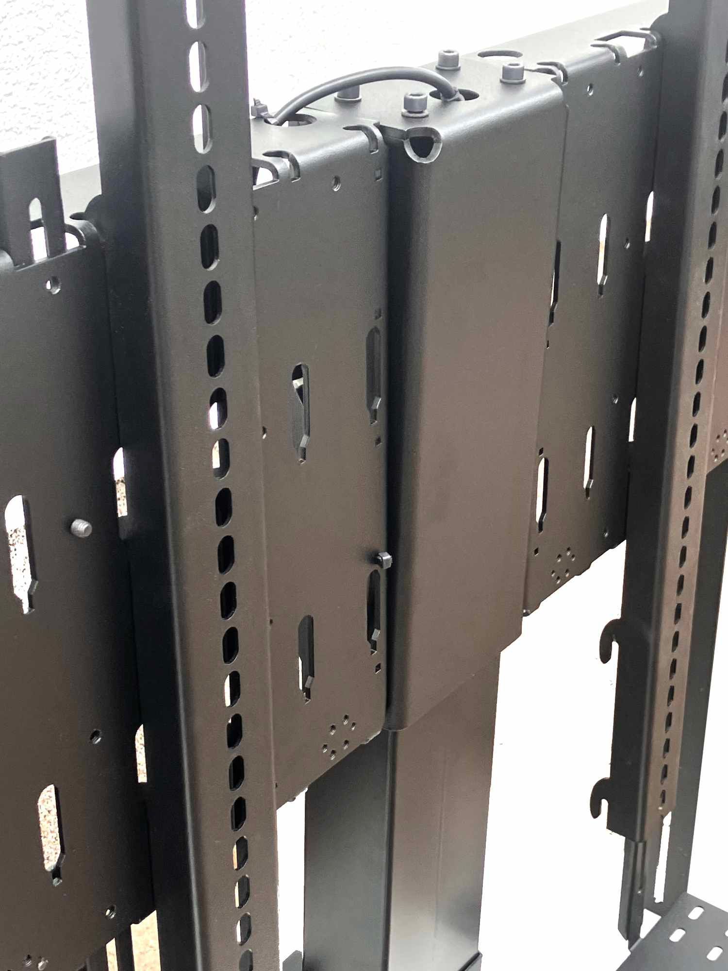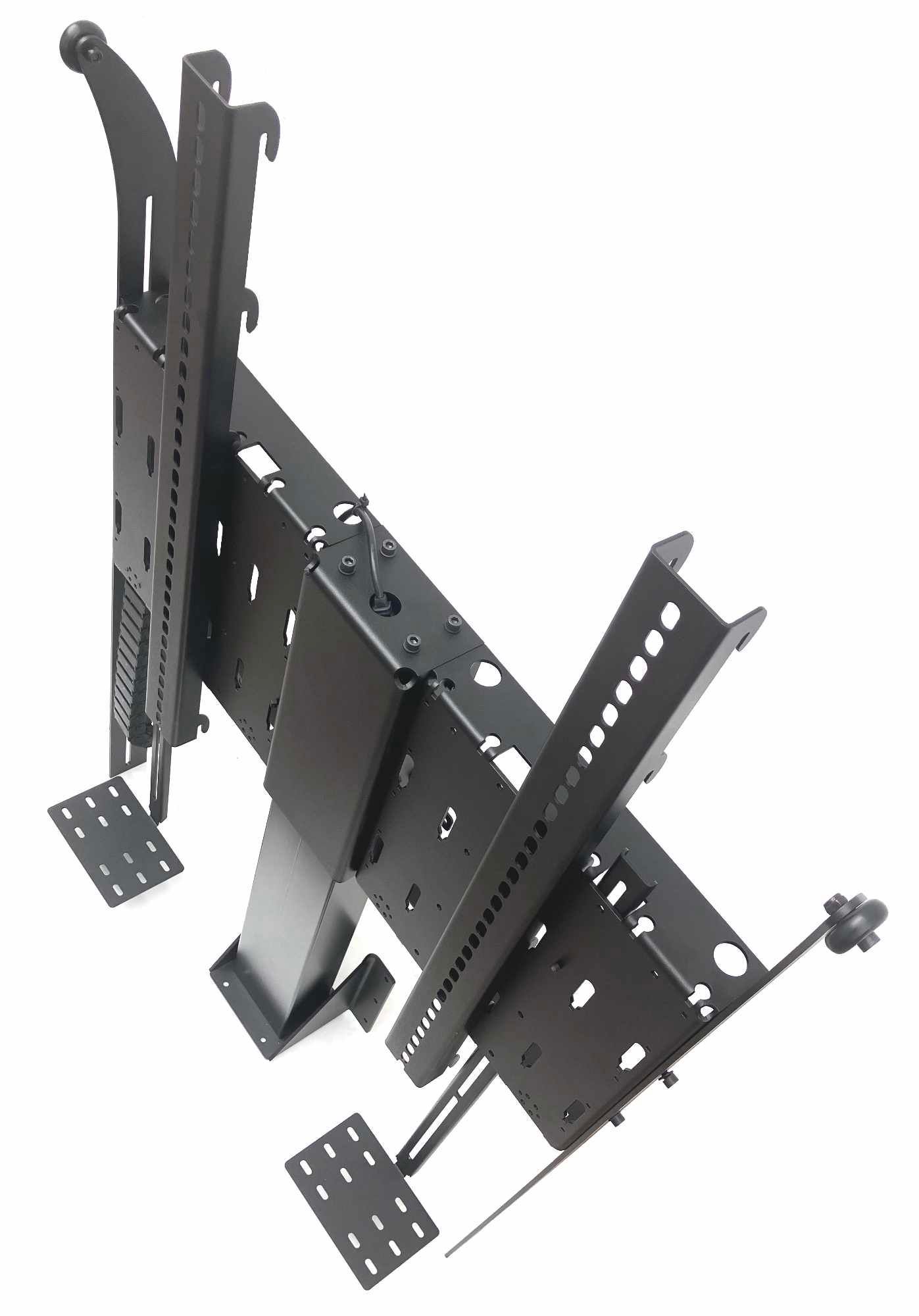 Die Bildschirme sind an einer oder zwei soliden Teleskophubsäulen befestigt, die ursprünglich für höhenverstellbare Schreibtische konzipiert wurden. Die Hubsäulen sind mit einem sensiblen Kollisionssensor ausgestattet. Jede Hubsäule ist für ein Gewicht bis 70 kg ausgelegt.